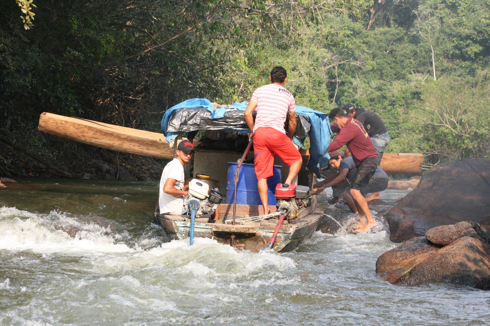 We hit a few times that put slow leaks in the boat and we’d have to bail every half hour, but we stopped and patched it with cotton and with the quick experienced handling of a machete.