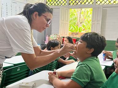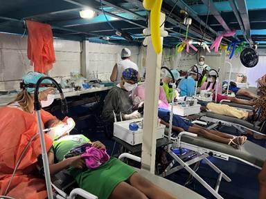 In addition to the dental treatment on the boat. We had a team of dentists go to the local school along the river and teach the importance of dental care. Then we gave each student a dental kit and a fluoride treatment.