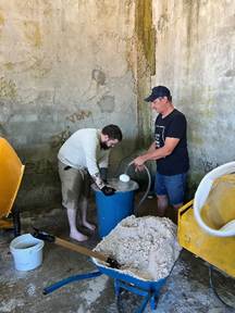 The team spent a lot of time helping to build the filters and sifting and cleaning sand for them. The type of sand used for the filters is a crucial factor in producing safe drinking water. The preparation process to build a filter requires a significant amount of time.