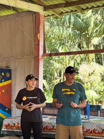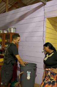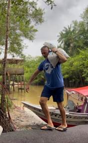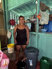 After the team built the filters, we set off on the river to deliver them for four days, during which we were able to provide nearly 50 filters. To deliver filters to some of the houses requires strength and agility. The bags of sand weigh about 40 pounds, and sometimes, to enter the home, you need to walk on logs, climb high stairways, that are wet and slippery.