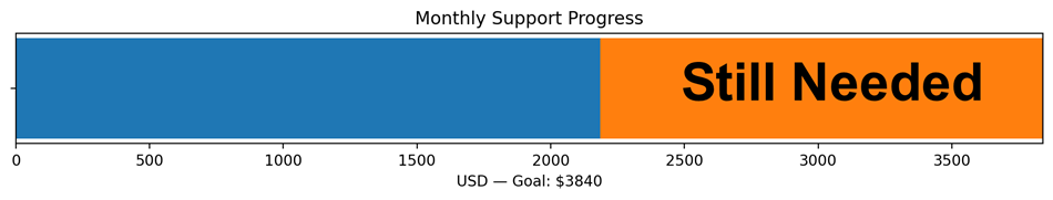 Below is an update on our current fundraising efforts. We are grateful to the new partners who have joined us in the ministry. Currently, we still need to raise $1,656 per month. It is moving down, and we are getting close.