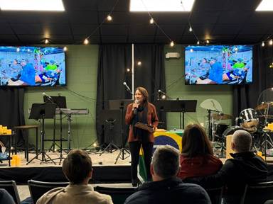 We got to share at Vineyard Cleveland, pastored by Eben and Sarah Brusco. It was great to share what has been happening in Brazil and to see some of the team members who came down to minister alongside us in 2024. They plan to bring in a team in 2026, and we met the team coming. It will be great to have them down again.